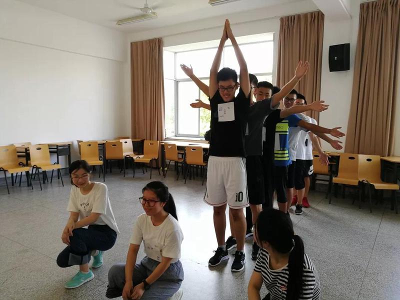 令人印象最深刻的就属“连接你我”和“叠纸”游戏啦。连接你我游戏中,每个人发一张彩色的方格纸,在纸上写下自己的姓名、家乡、爱好以及座右铭等等,完成之后,拿着相同颜色纸张的同学相互交换,以此来进一步地了解。之后的“叠纸”游戏更加动人心魄,每班均分几组,每组各发一张大纸,小组成员出谋划策,想出折叠纸张的好方法,之后全组人员互拥在一起,站在纸上不偏不倒,最终折叠次数最多的即为胜者。