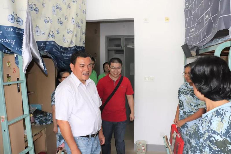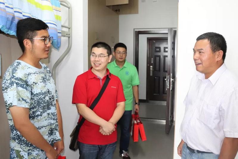 来到2018级新生的宿舍,陈书记、张老师与李老师将准备好的月饼礼盒赠送给同学们,并送上了对学子的中秋祝福,询问了解各同学踏入大学以来的学习生活情况,对同学们表示了期望。