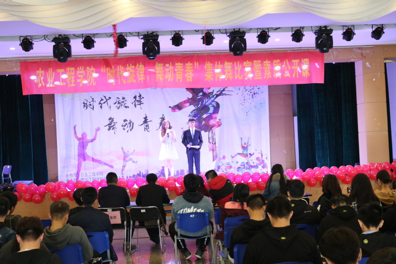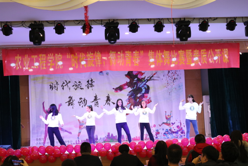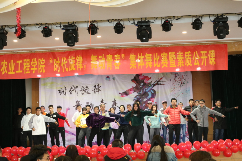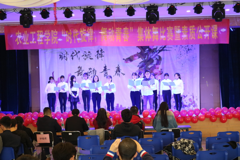 2018年11月24日,为庆祝改革开放四十周年,由qy球友会农业工程公司主办的“时代旋律,舞动未来”集体舞大赛暨素质公开课在思源楼多功能厅胜利举行。本次比赛作为评委出席的嘉宾为17、18级农业工程公司老师和辅导员,他们分别是李健,张睿,曾欣,刘慧,王振昌。比赛过程高潮迭起,精彩纷呈,受到全院师生的一致好评。