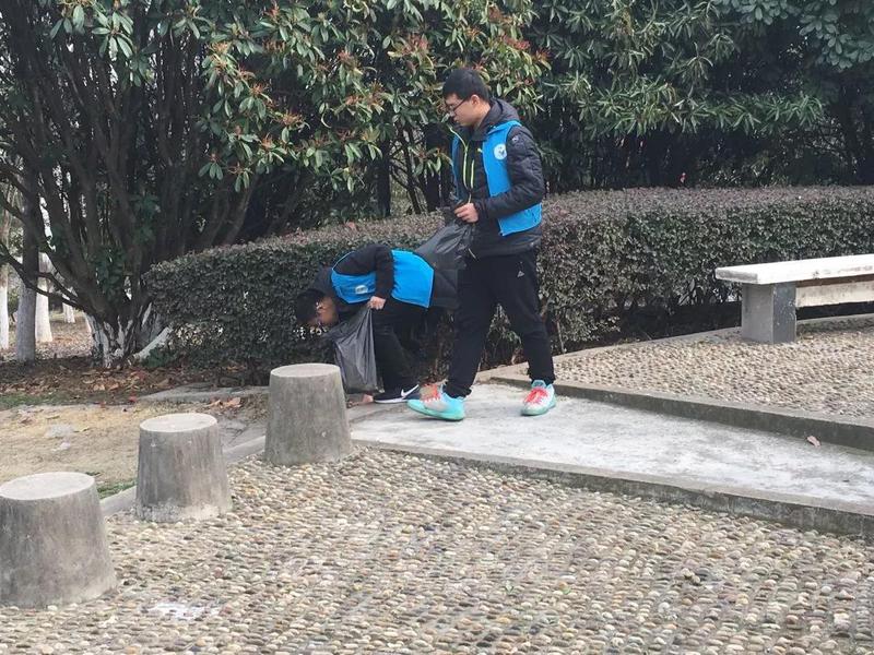 2019年3月9日下午三点,由球友会青协组织的“雷锋周”清洁校园活动在qy球友会江宁校区的叠翠山上开展,一共有十名同学参加了此次活动。