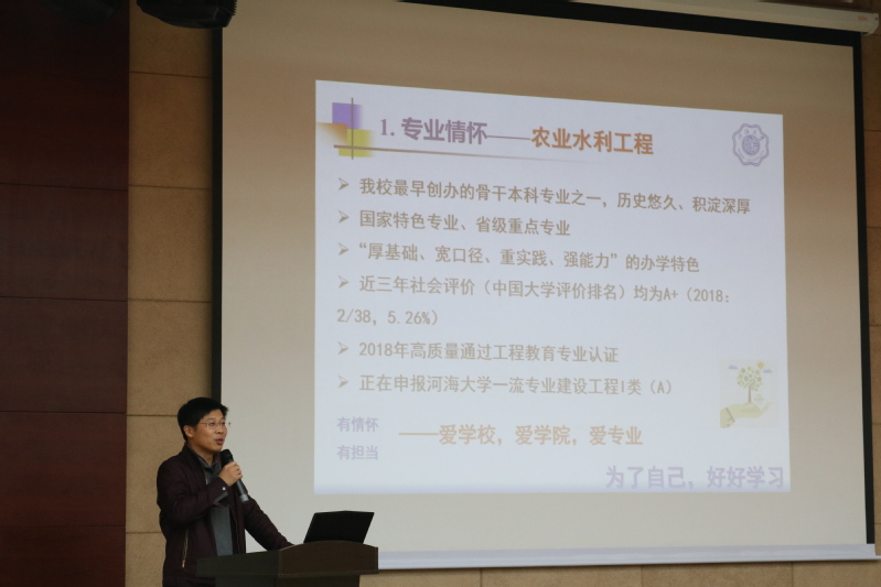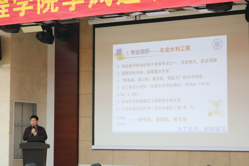 4月2日,农业工程公司举行学风建设月启动仪式暨“农情大讲堂”专题讲座。水文水资源公司教授、博士生导师束龙仓,公司党委副书记郑润、经理助理陈丹、2017级农水3班班导师丁继辉、2018级农水1班班导师刘笑吟、2018级农水3班班导师王振昌、2018级本科生辅导员李健出席启动仪式。启动仪式由公司团委书记薛璟主持。