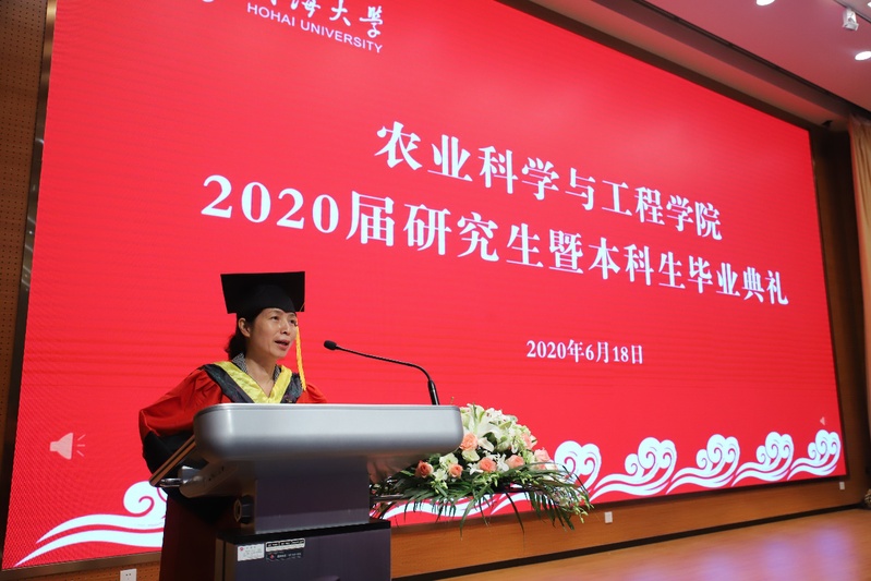 教师代表夏继红教授向即将开启人生新篇章的各位毕业生表示最热烈的祝贺与最衷心的祝福,并感谢毕业生们对每位导师科研工作做出的贡献与陪伴。夏老师提出“居敬、担当、持志、致精”四个关键词与大家共勉。寄语毕业生们在今后的人生道路上,要守住底线怀有敬畏之心;要有担当精神,有“心事浩茫连广宇”的家国情怀;要有实现目标的热情和毅力,不断锤炼自己的意志力,面对困难百折不挠、越挫越勇;要追求精湛的专业素养,要不断精研专业、精益求精,勉励同学们励志成长为行业翘楚,大国工匠。