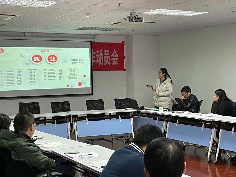 本科辅导员李健、苏娴、薛璟分别对负责年级的学业成绩、新生入学教育和毕业班升学就业情况进行研判分析,与参会领导、教师交流不同年级员工学习和心理特点。