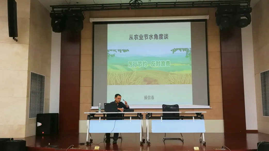 9月23日下午,球友会在行政楼一楼报告厅举行节水讲座。操信春教授以“从农业节水角度谈——厉行节约,反对浪费”为题,向2020级研究生同学们做报告。