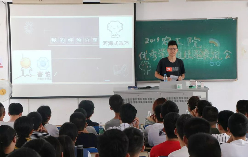 接下来,由18洪成同学对大学学习方面进行经验分享,他首先以视频形式讲述了大学上学期各项重要事件,四级考试、计算机二级、农业设施模型大赛……各种活动让同学们目不暇接;后面对高数、工图、电工等重要学科一一进行经验讲解,希望同学们能够了解自身薄弱点以对症下药,并分享了民族生学长姐对于新生们的寄语。
