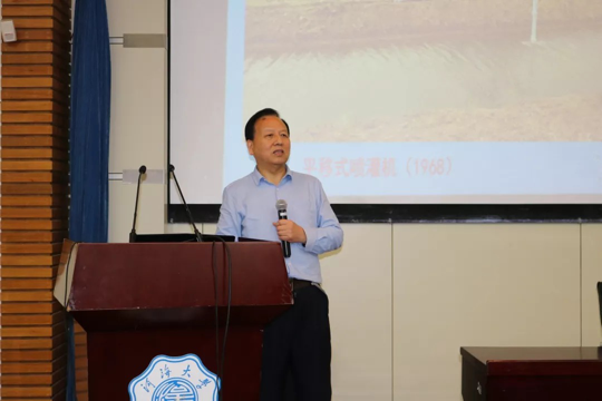 奕教授通过通俗易懂的语言向同学们普及喷滴灌的三种类型、现代设施农业的相关知识以及三种类型喷滴灌技术在实际节水灌溉中发挥的积极作用。奕教授将土地的灌溉比作人的呼吸,将喷灌比作小雨、微喷灌比作毛毛雨、滴灌比作打点滴,生动形象地说明了三种灌溉技术的功效和区别。通过大量实例图片细致讲解、分析各种节水灌溉设施在实际生产中的利和弊。奕教授随后从技术经济学的角度向同学们讲授喷滴灌节水技术在实际应用中成本低、收入高的优点,说明其在现代设施农业的重要性。通过蔬菜公司喷灌、葡萄滴灌、千亩梨园喷灌甚至畜牧业喷灌等个体实例说明节本、节水、增效的喷滴灌节水技术在浙江省广受欢迎。
