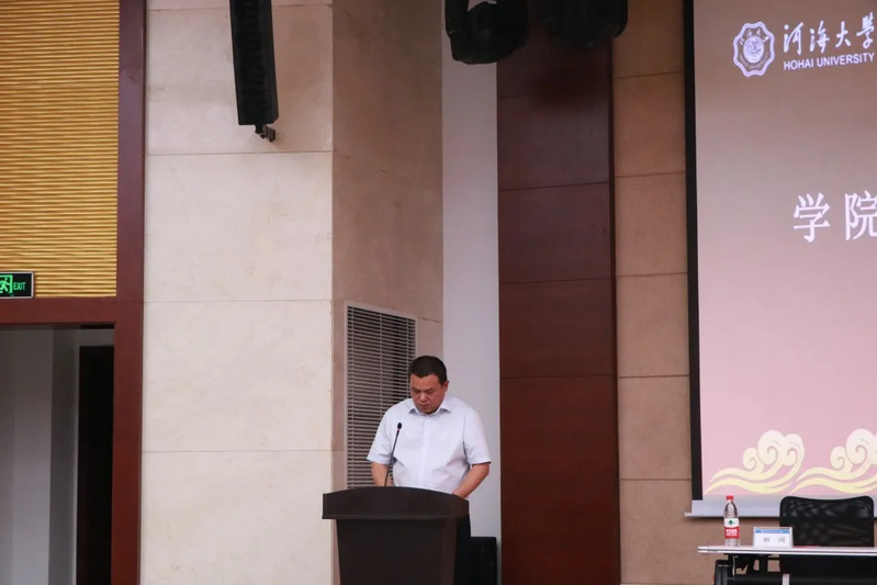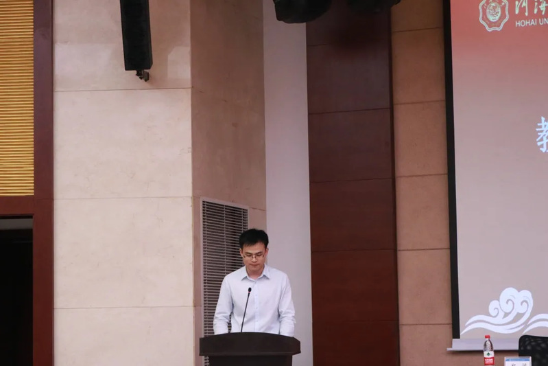 随后,青年教师代表刘祥代表全体公司全体教师向20级新生表示衷心的祝贺和热烈的欢迎,并表示希望新生依然重视学业,把学习当成主要目的而不是唯一目的;在学习之余多参与课外活动开拓视野,合理安排课余时间。同时要坚守善良底线,以善心待人接物,发扬老员工美好品质。紧接着,老生代表孙传喆以学长的角度从学习,工作和生活三个方面和大家分享了在河海的大学时光,希望同学们能够在四年的生活中紧握机会,肩负责任、树立正确的人生方向。最后,新生代表柏玥辰向领导和老师表达了新生的决心与意志,表示愿意为河海、为国家做出贡献,一定好好学习,不负青春不负祖国。