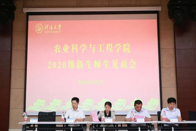 2020年9月10日上午公司隆重举行了2020级新生师生见面会暨开学第一课。公司经理陈菁、公司党委书记陈毓陵、副经理朱成立、副经理徐俊增、公司党委副书记郑润、经理助理陈丹、公司农业水利工程系主任翟亚明、农业节水研究所所长郭相平、灌溉工程研究所所长缴锡云、实验中心主任王为木、专业建设办公室主任张睿、交流与服务中心副主任刘笑吟、20级农水一班班导师李江、二班班导师陈会向、三班班导师余正洪、四班班导师刘祥、土治一班班导师冯根祥、土治二班班导师黄萱、院团委书记及19级本科生辅导员薛璟、18级及20级本科生辅导员李健以及全体2020级本科新生出席了此次活动。
