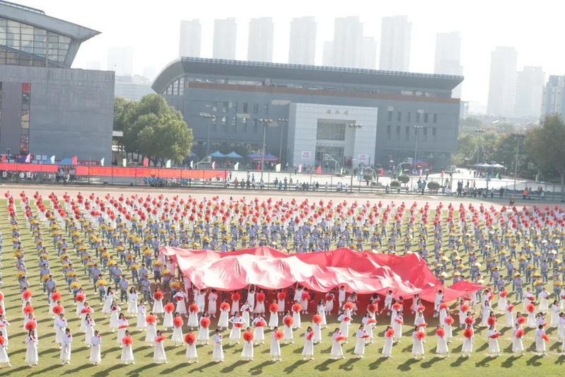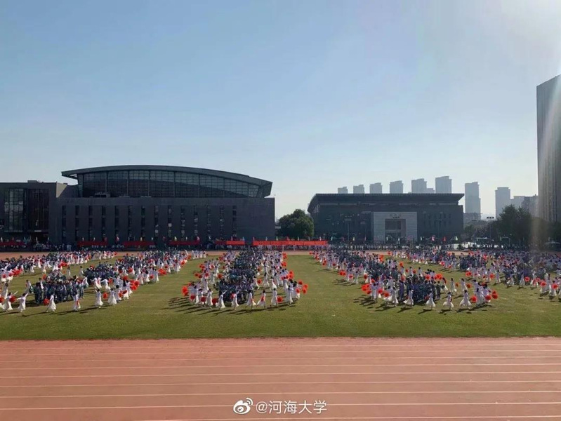 其次,我们看到的是“河海三宝”之一的团体操。第一场《大爱中华》展现了在新冠肺炎疫情中,华夏儿女众志成城保家国安康的中国精神;第二场《大哉河海》展现了百年巍巍学府呕心培育学子万千,治水报国助江河安澜;第三场《大美未来》展现了站在两个一百年的历史交汇期,面向“双一流”建设的崭新号角,河海人奋勇前进!天下有溺犹己溺,此志毋稍弛。大哉河海奔前程,毋负邦人期!