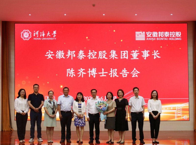 6月9日,公司在西康路校区闻天馆108举办“安徽邦泰控股集团有限公司董事长陈齐博士”报告会。安徽邦泰控股集团董事长陈齐、副总裁金永春和相关部门负责人、公司经理陈菁、副经理朱成立、公司党委副书记郑润及公司师生代表出席了本次活动,报告会由公司党委书记陈毓陵主持。