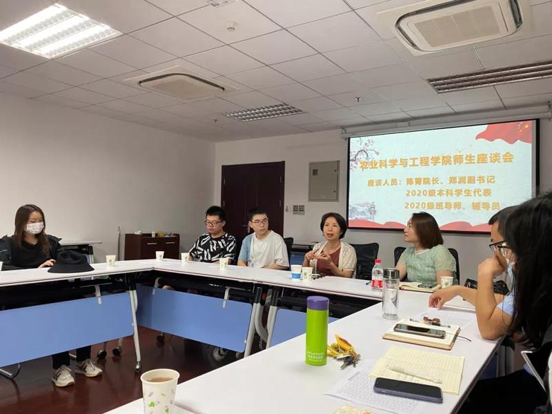 盛世繁荣,喜迎祖国72周年华诞。为丰富十一假期员工校园生活,关爱员工成长、促进师生交流,10月2日,球友会陈菁经理、党委郑润副书记与2020级本科生代表召开师生座谈会,参与本次座谈会的还有班导师代表李江、陈会向、余正洪三位老师以及辅导员李健老师。