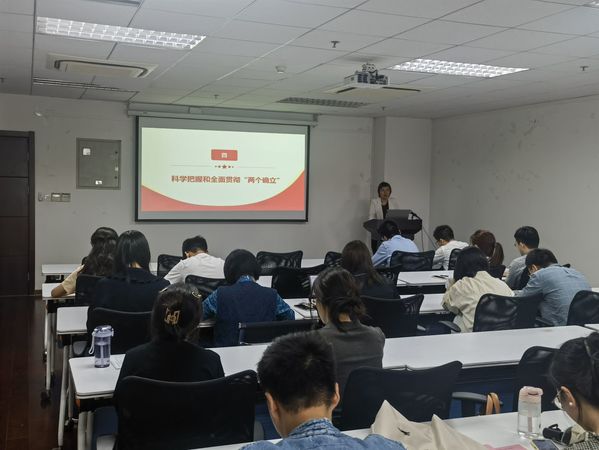 张洁副经理分章节解读“两个确立”的重要意义,强调“两个确立”是马克思主义政党的重大建党原则、是党百年奋斗历史特别是新时代伟大实践得出的重大历史启示、是新时代取得重大成就的决定性因素,要科学把握和全面贯彻“两个确立”,坚持马克思主义基本原理同中国实际,同中华优秀传统文化相结合,为党和人民事业发展提供科学指导。