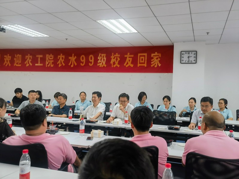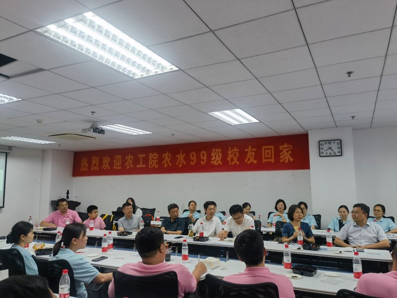 首先,全体起立,共唱校歌。随后,公司党委朱书记代表公司发表讲话,朱书记表达了公司热烈欢迎99级农水的同学们回家,感谢大家对公司的关心和支持,并回顾了同学们在校期间的一些往事,祝愿大家在未来一切顺利。徐经理对大家的到来表示了欢迎与感谢,同时对大家在二十年中所取得的成绩进行了肯定,并着重介绍了农水系这二十年来的发展历程以及公司的现状,最后向在场各位送出了美好祝愿。